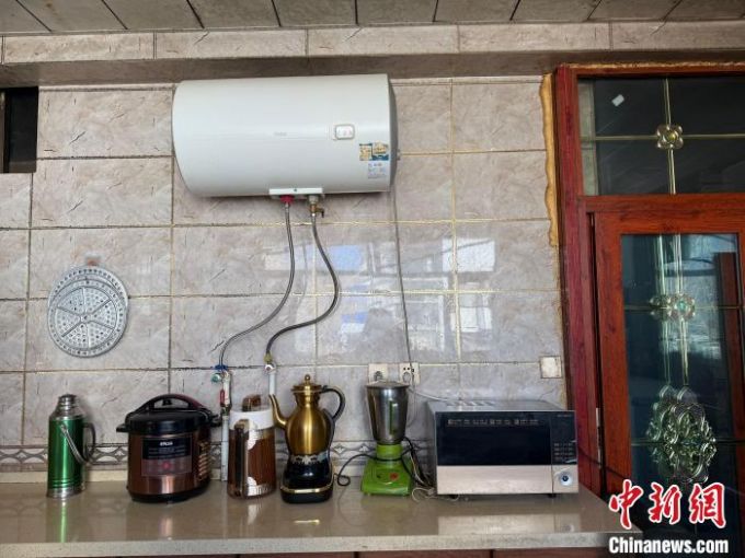 图为米玛顿珠厨房内,摆有电动酥油茶桶、电饭锅等电器。贡桑旺姆 摄